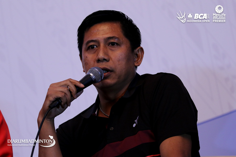 Nova Widianto (Pelatih Ganda Campuran Indonesia) saat memberikan sambutan