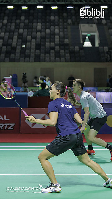 TANG Chun Man dan HKGTSE Ying Suet (Hongkong) bersiap menghadang serangan