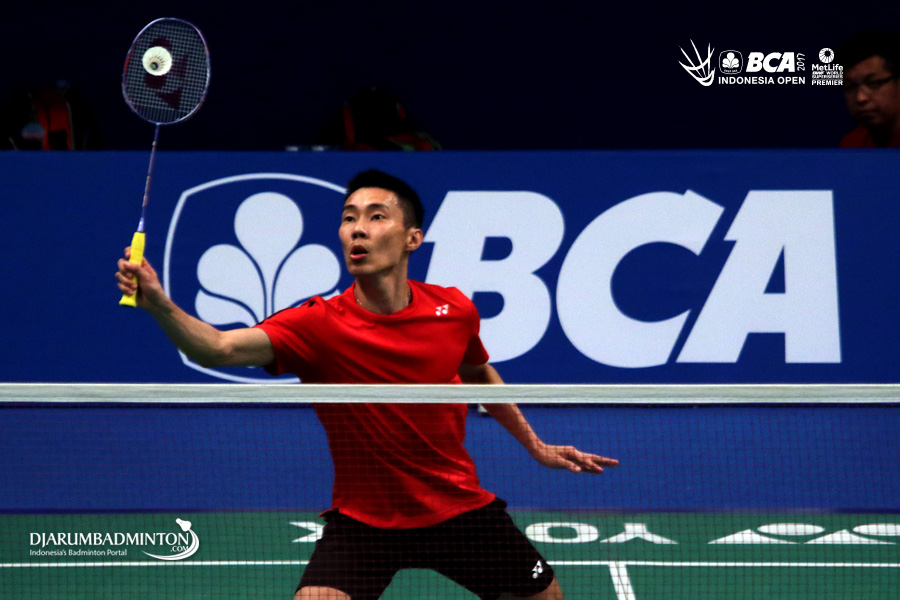 Lee Chong Wei (Malaysia) mengembalikan shuttlecock saat berlatih