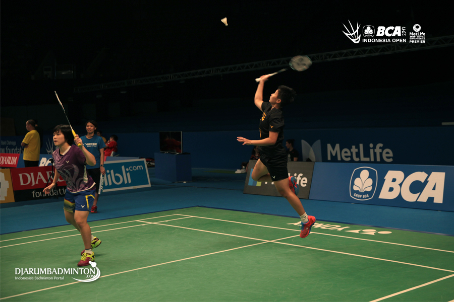 Pebulutangkis ganda putri malaysia saat berlatih