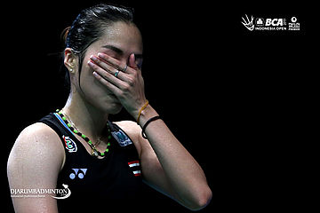 Ekspresi kekecewaan Ratchanok Intanon (Thailand)