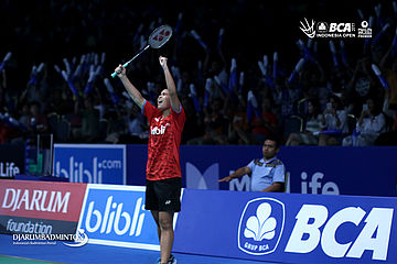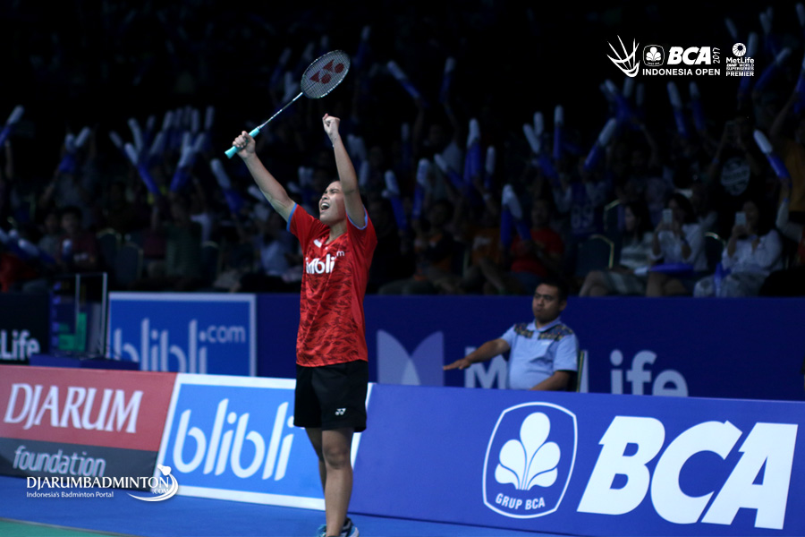 Selebrasi kemenangan Gregoria Mariska (Indonesia)