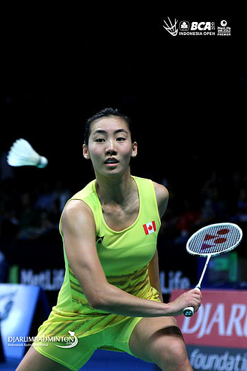 Michelle Li (Kanada) bersiap menyambut pengembalian