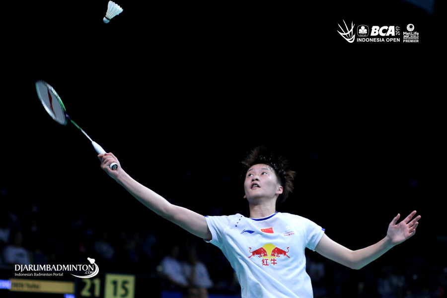 Chen Yufei (Tiongkok) menyambut pengembalian.