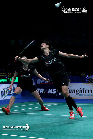 Puttita Supajirakul/Sapsiree Taerattanachai (Thailand) mengembalikan shuttlecock