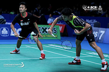 Angga Pratama/Ricky Karanda Suwardi (Indonesia) menyambut pengembalian