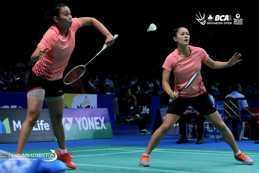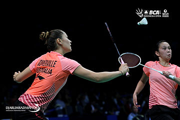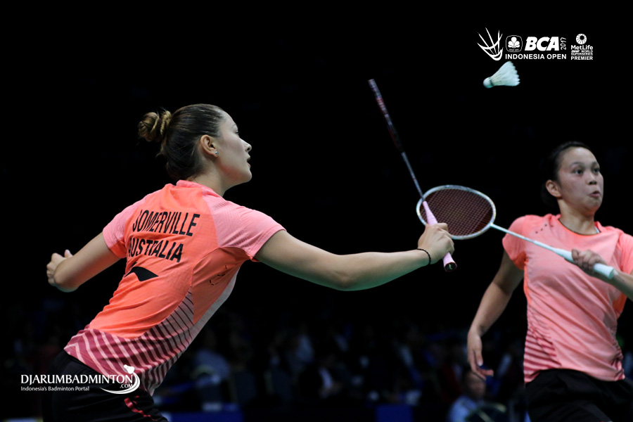 Gronya Soverville/Setyana Mapasa (Australia) bersiap menghadang serangan