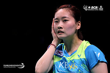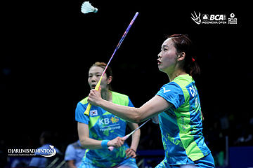 Chae Yoo Jung/Kim So Yeong (Korea) bersiap menghadang serangan