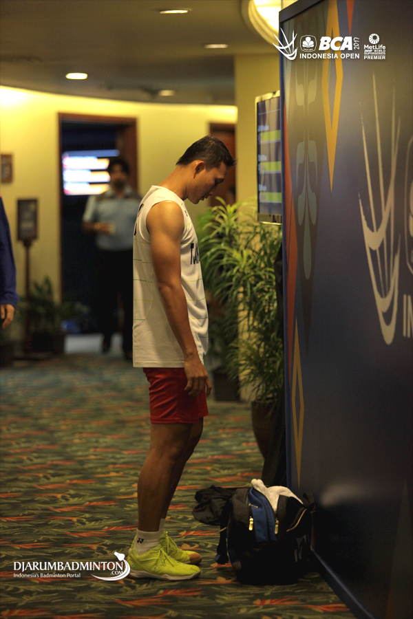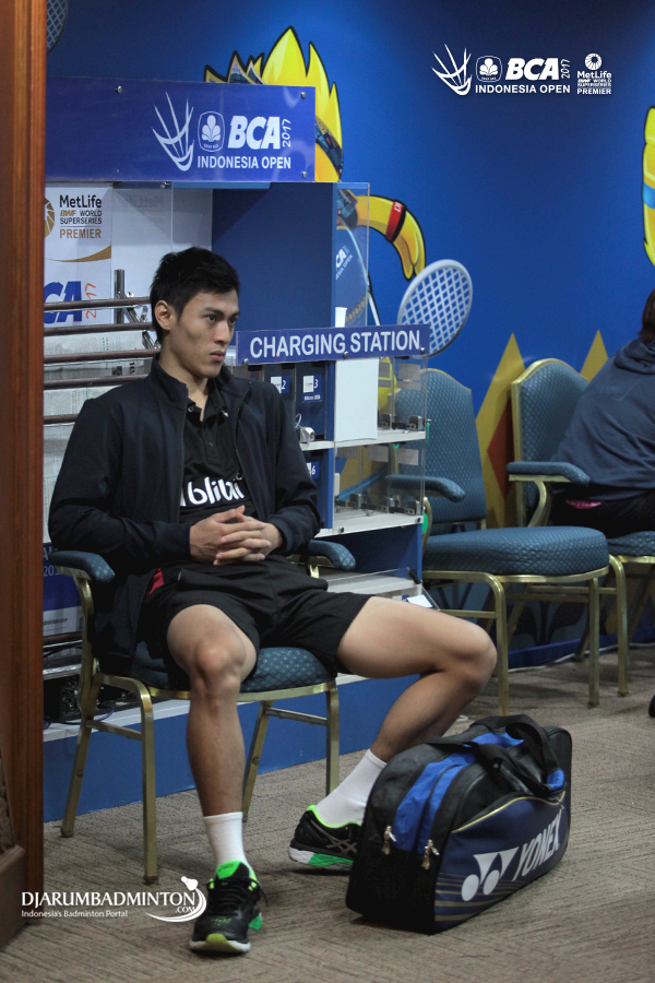 Shesar Hiren Rhustavito (Indonesia) menunggu giliran bertanding