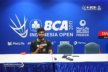 Kidambi Srikanth (India) saat menjawab pertanyaan wartawan