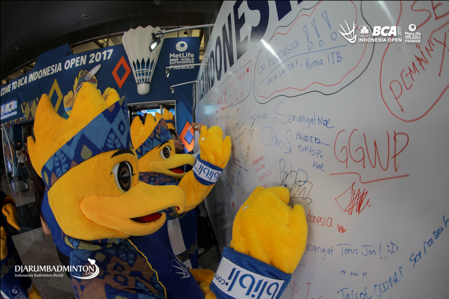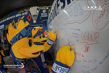 Maskot BIO ikut menuliskan dukungannya di wall of fame