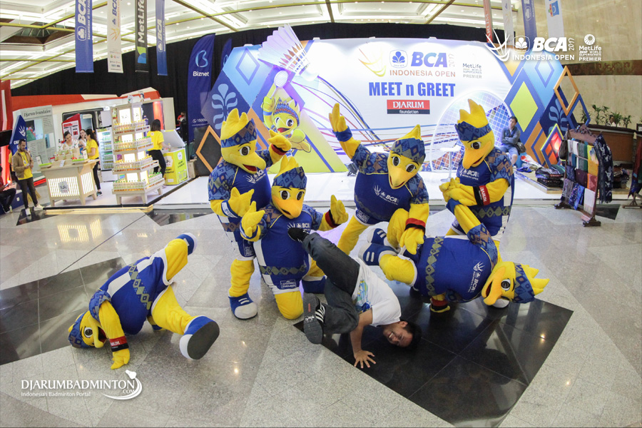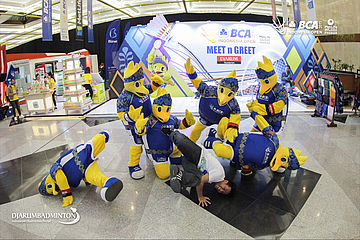 Pose unik seorang penonton saat foto bersama Maskot BIO