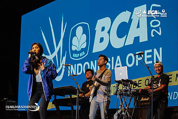 Suasana saat Isyana Sarasvati menghibur penonton dalam gelaran BCA Indonesia Open Superseries Premier 2017