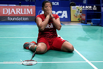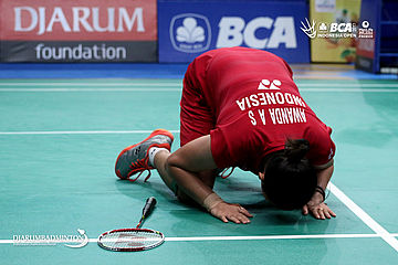Selebrasi kemenangan Anggia Shitta Awanda (Indonesia)