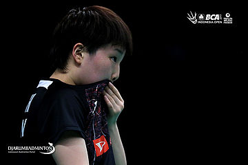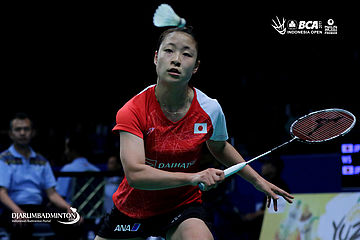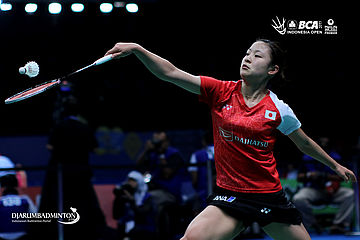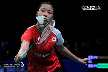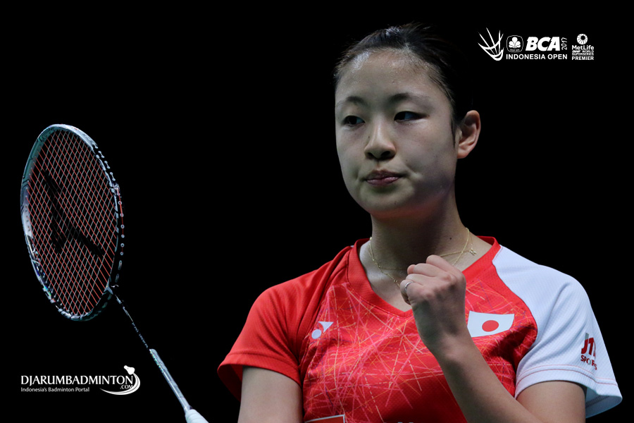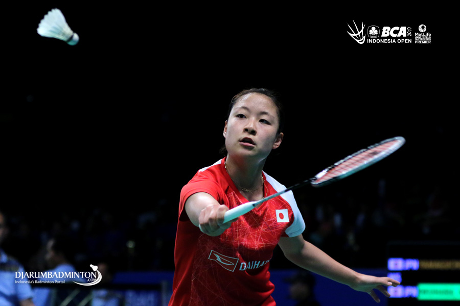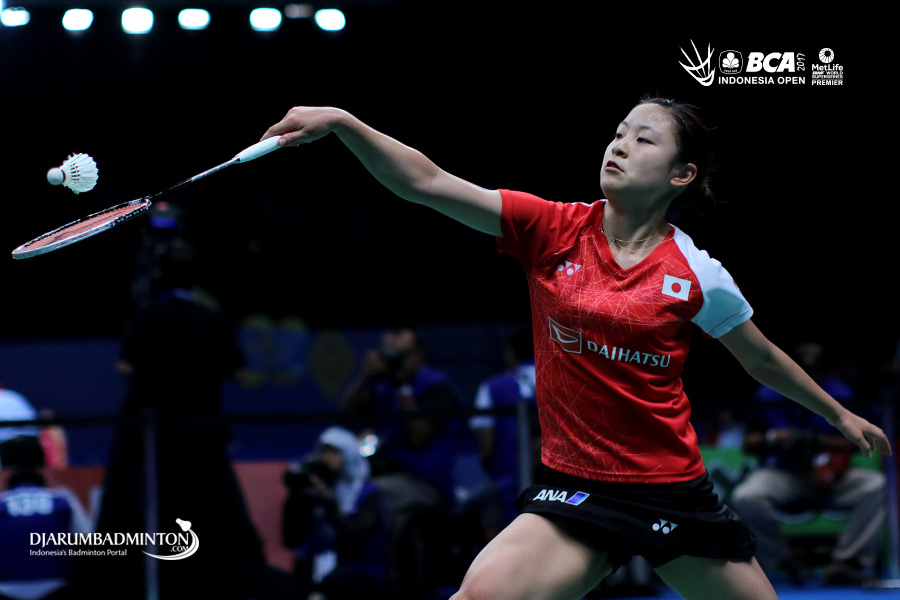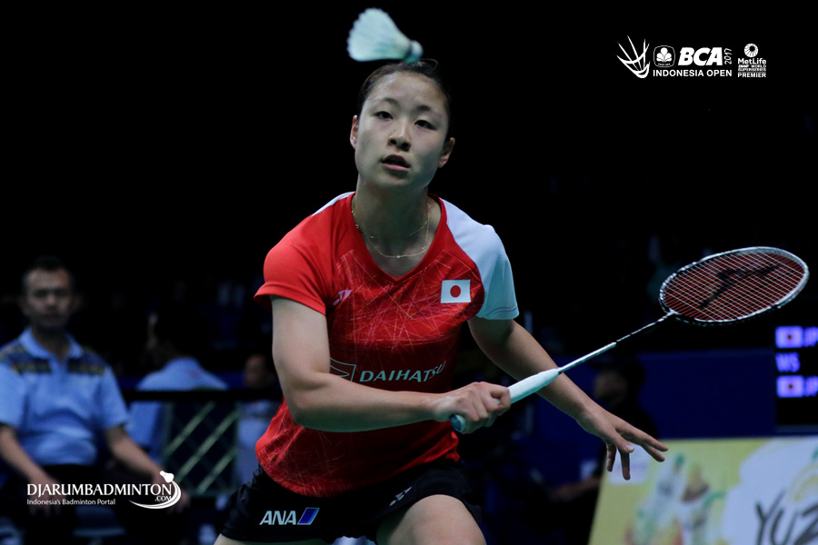 Nozomi Okuhara (Jepang) bersiap melepaskan serangan