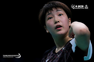 Nozomi Okuhara (Jepang) bersiap menyambut pengembalian