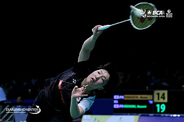 Akane Yamaguchi (Jepang) melepaskan serangan