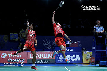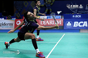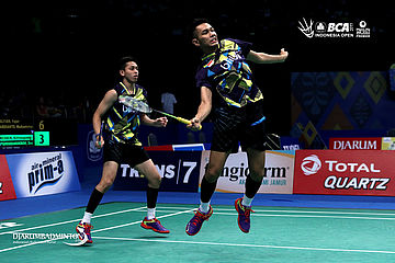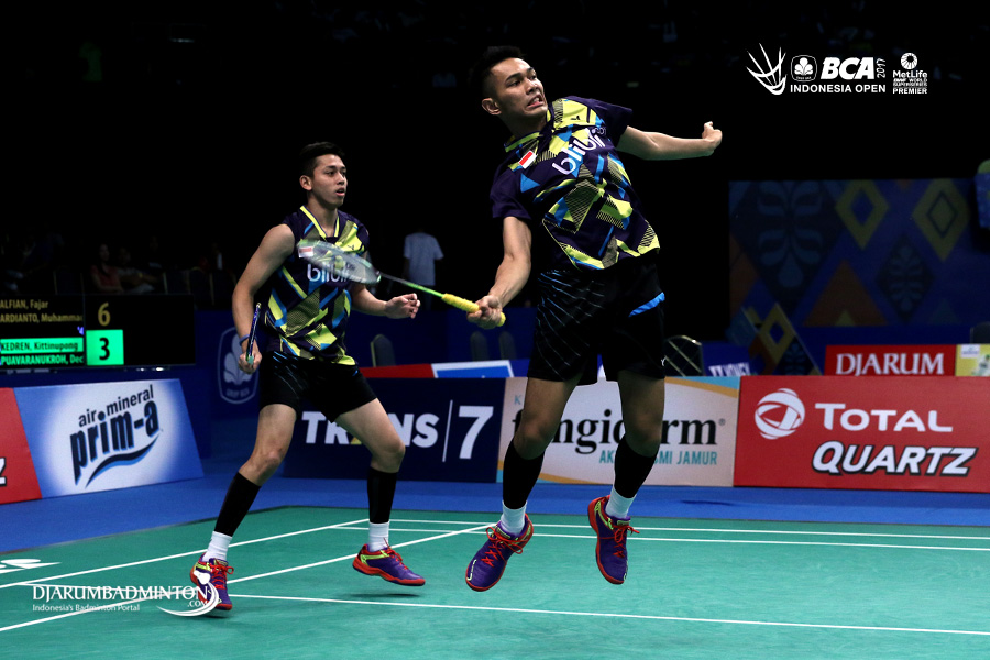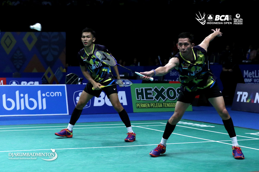 Kekompakan Fajar Alfian/Muhammad Rian Ardianto (Indonesia) di lapangan