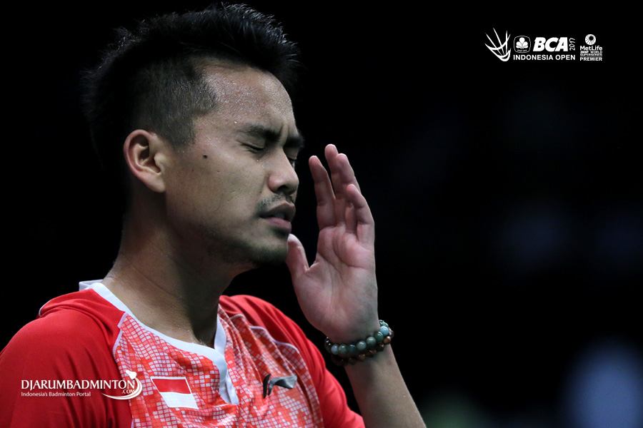 Ekspresi kekecewaan Tontowi Ahmad (Indonesia)