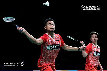 Tontowi Ahmad/Liliyana Natsir (Indonesia) menyambut pengembalian