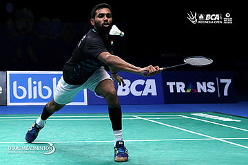 Nitchaon Jindapol (Thailand) bersiap menyambar pengembalian