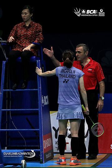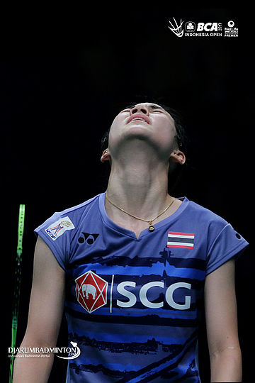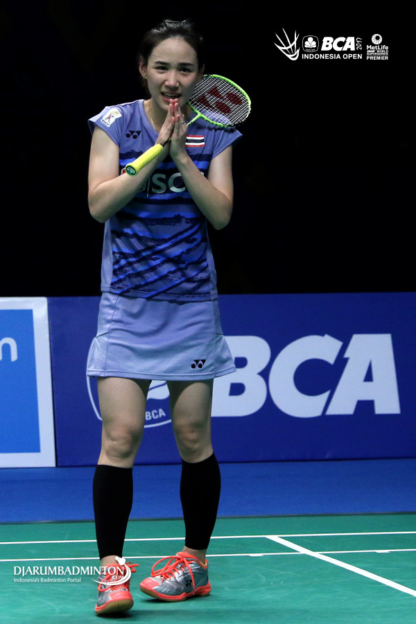 Nitchaon Jindapol (Thailand) memberikan salam kepada seluruh supporter Indonesia yang telah mendukungnya