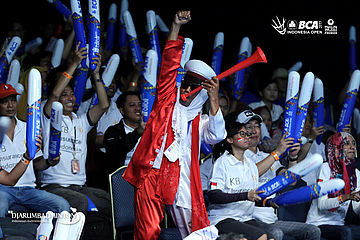 Salah satu suporter terlihat bersemangat mendukung atlet Indonesia