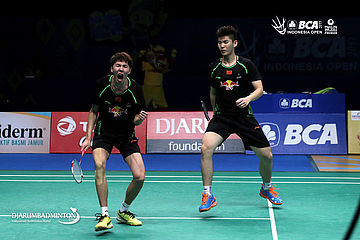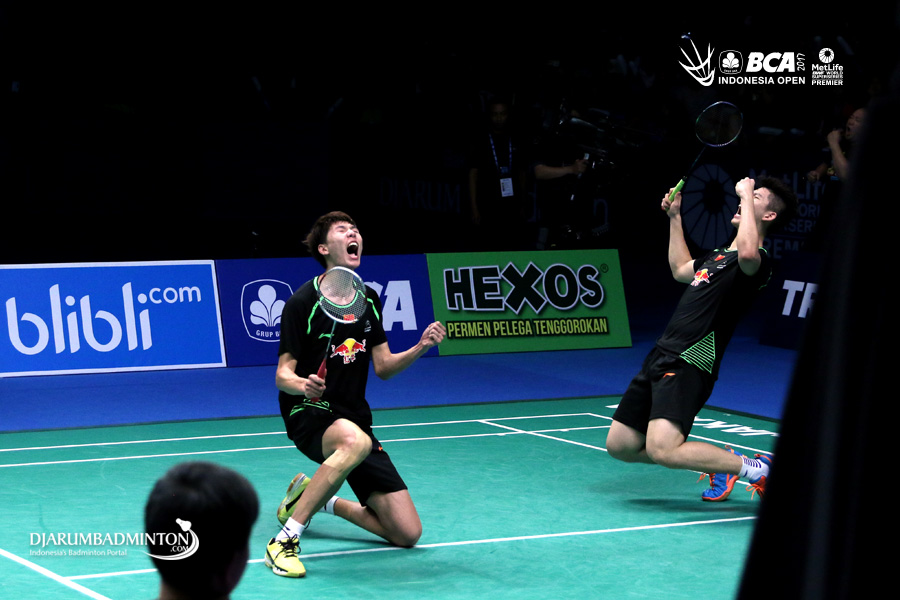 Selebrasi kemenangan Li Junhui/Liu Yuchen (Tiongkok)