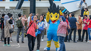 Beberapa pengunjung berfoto di sekitaran area BLIBLI Indonesia Open 2018