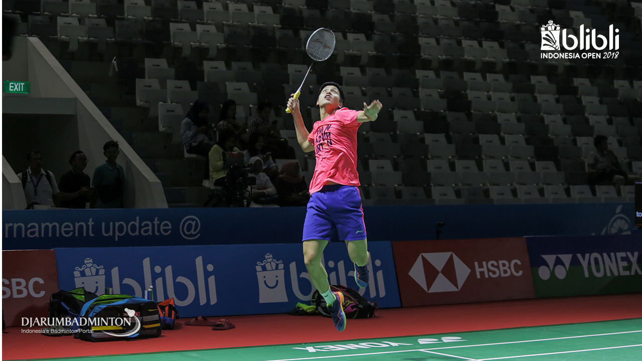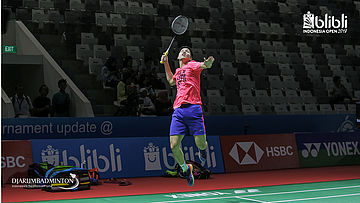 Anders Antonsen (Denmark) mengembalikan shuttlecock