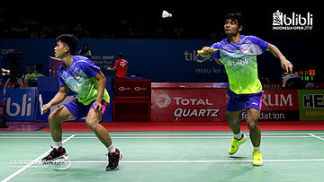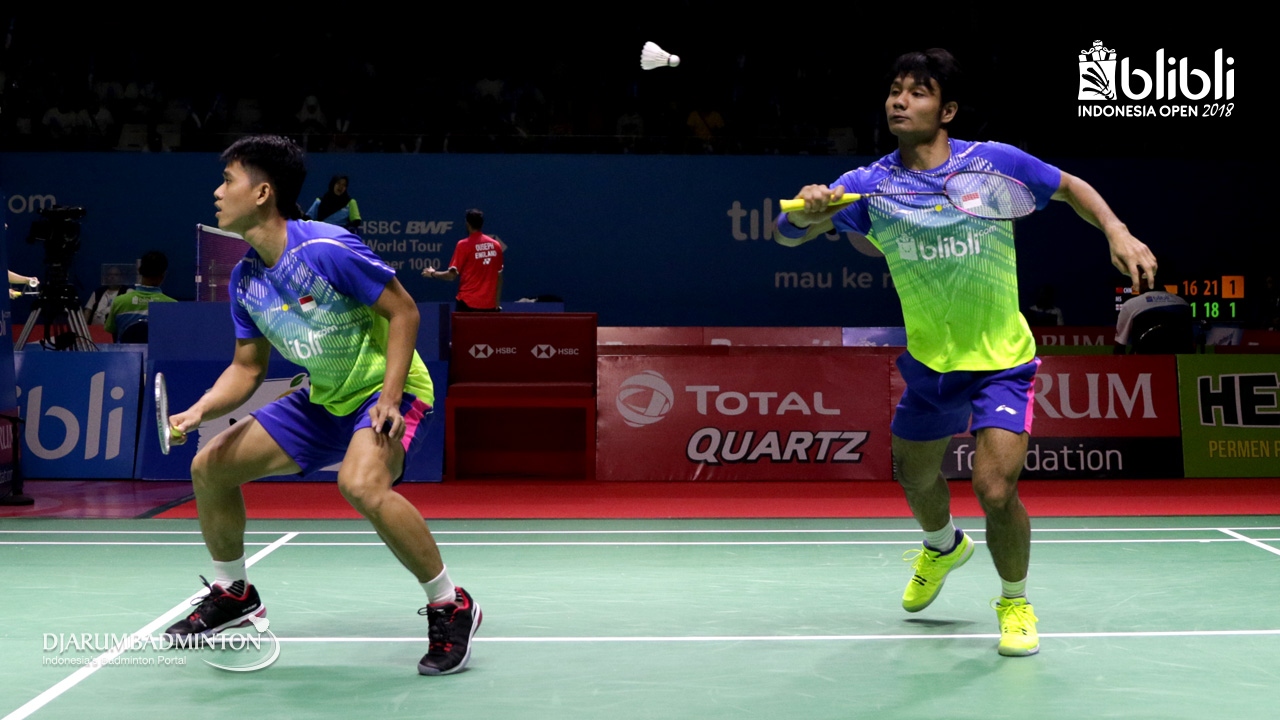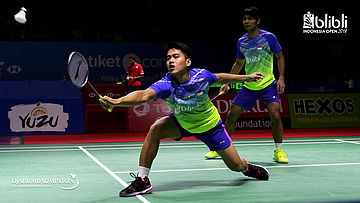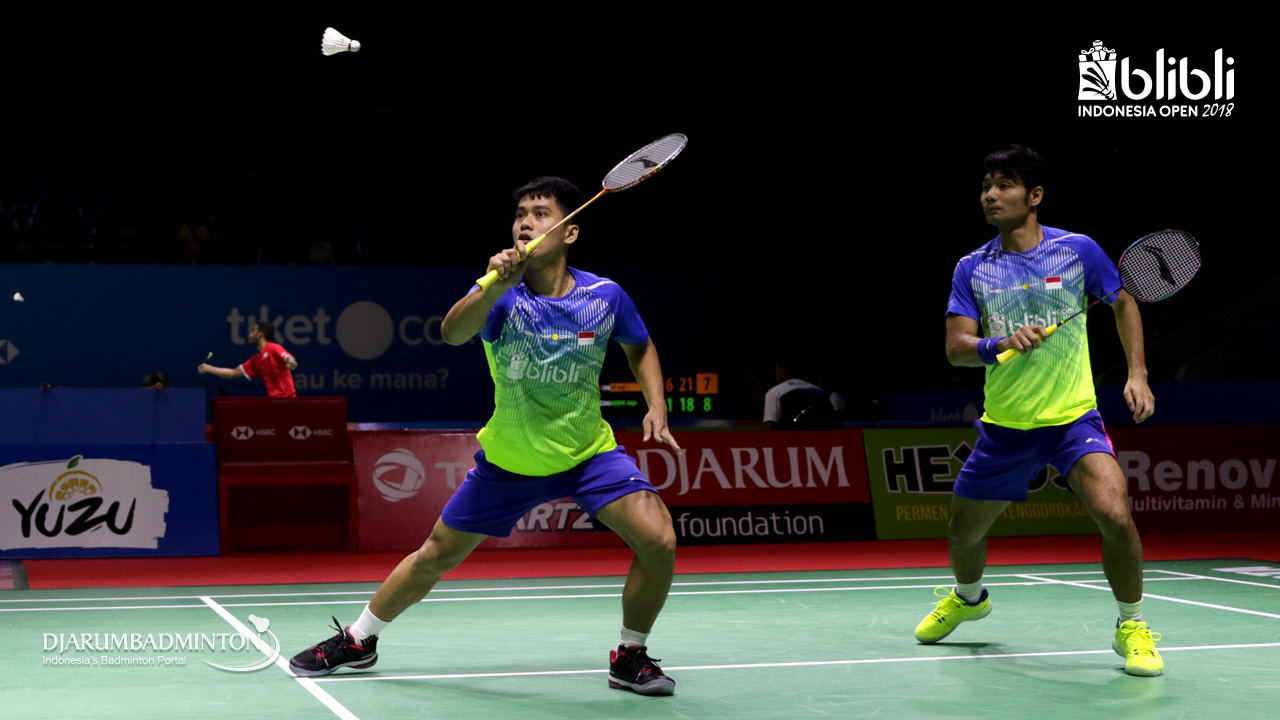 Berry Angriawan/Hardianto (INA) bersiap menghadang pengembalian.
