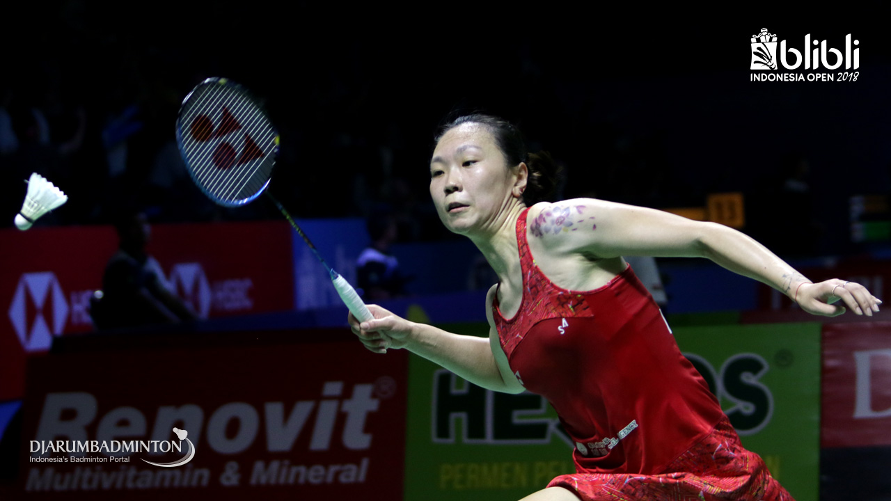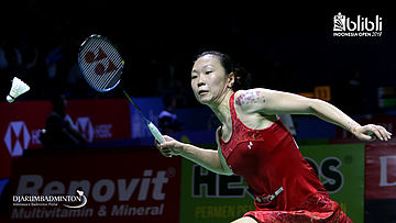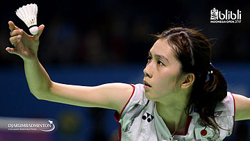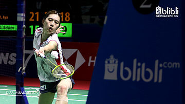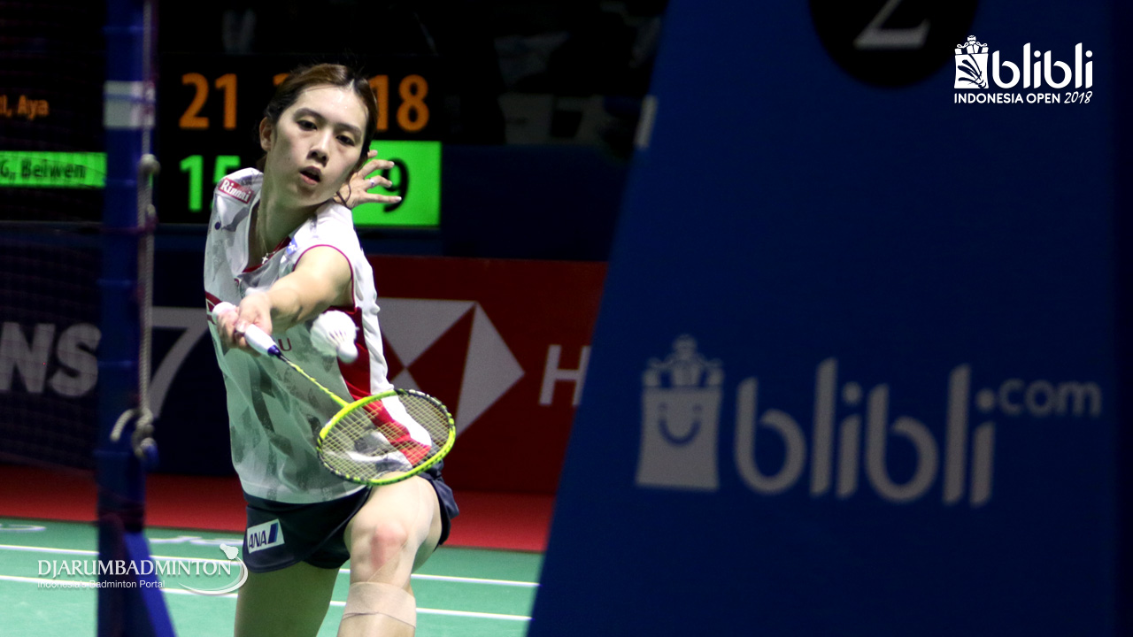 Aya Ohori (JPN) mengembalikan shuttlecock