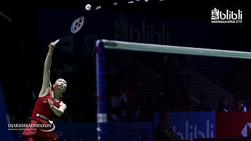Anthony Sinisuka Ginting (INA) terkecoh pengembalian lawan