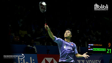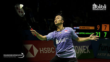Anthony Sinisuka Ginting (INA) melepaskan serangan