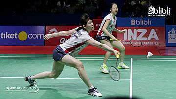 Mayu Matsumoto/Wakana Nagahara (JPN) bersiap menghadang serangan