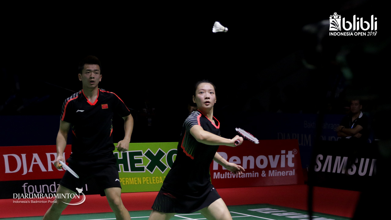 Zheng Siwei/Huang Yaqiong (CHN) bersiap menyambut pengembalian