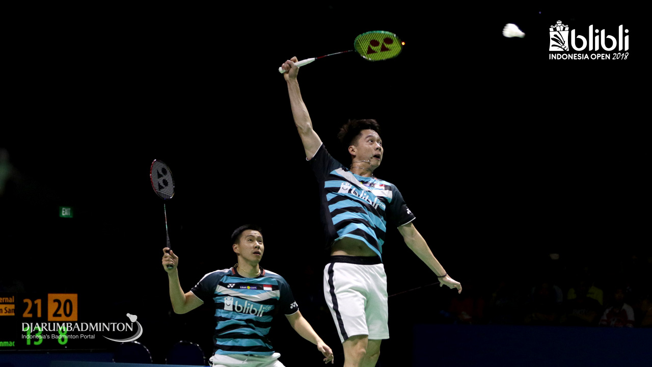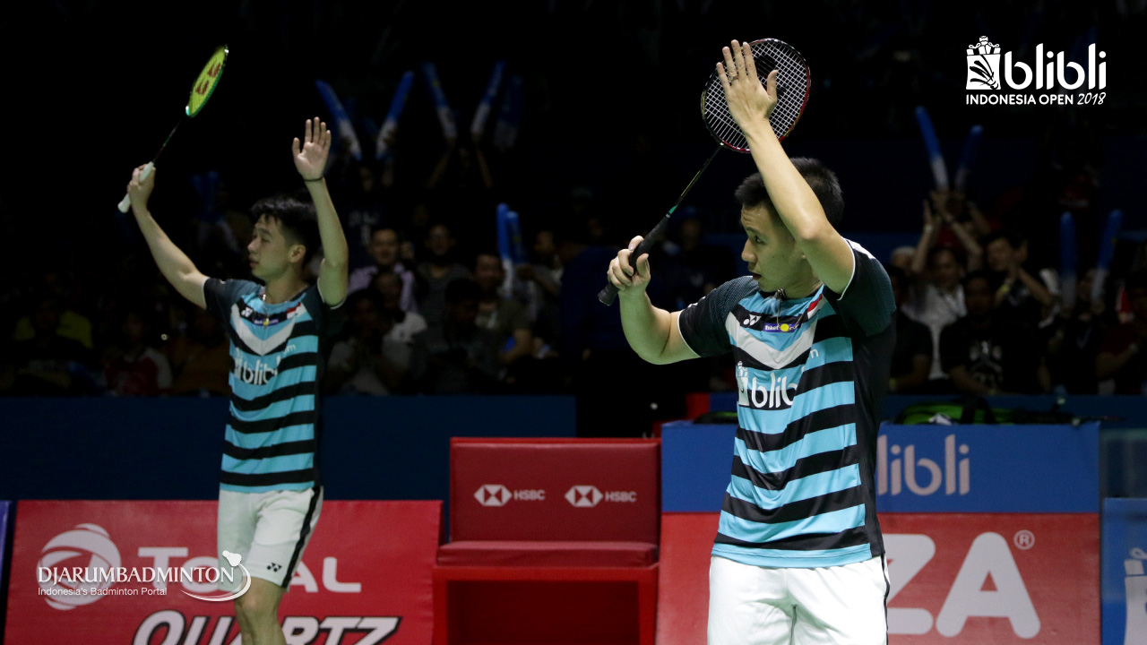 Marcus Fernaldi Gideon/Kevin Sanjaya Sukamuljo (INA) menyambut pengembalian