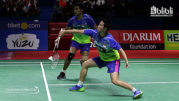 Tontowi Ahmad/Liliyana Natsir (INA) menyambut pengembalian