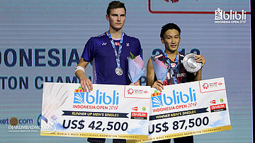 Kento Momota (JPN) keluar sebagai juara tunggal putra Blibli Indonesia Open 2018