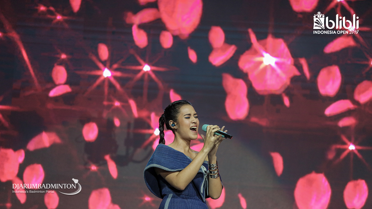 Raisa ikut memeriahkan gelaran BLIBLI Indonesia Open 2018