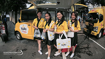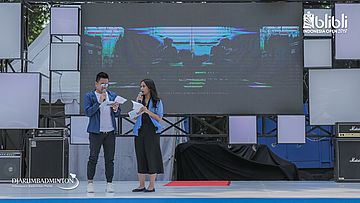MC meramaikan suasana di luar arena BLIBLI Indonesia Open 2018