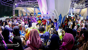 Suasana saat meet and greet Kento MOMOTA (Jepang) di booth BLIBLI