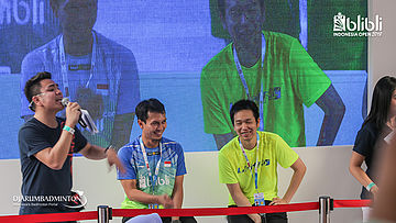 Suasana saat meet and greet Fajar ALFIAN dan Muhammad Rian ARDIANTO (Indonesia) di booth BLIBLI