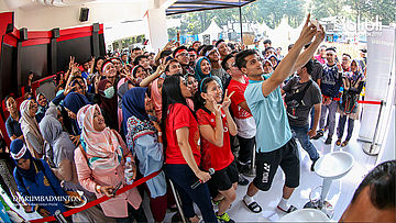 Suasana meet and greet Marcus Fernaldi GIDEON dan Kevin Sanjaya SUKAMULJO (Indonesia) di booth Djarum