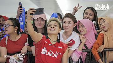 Apriyani RAHAYU (Indonesia) berselfi bersama pengunjung