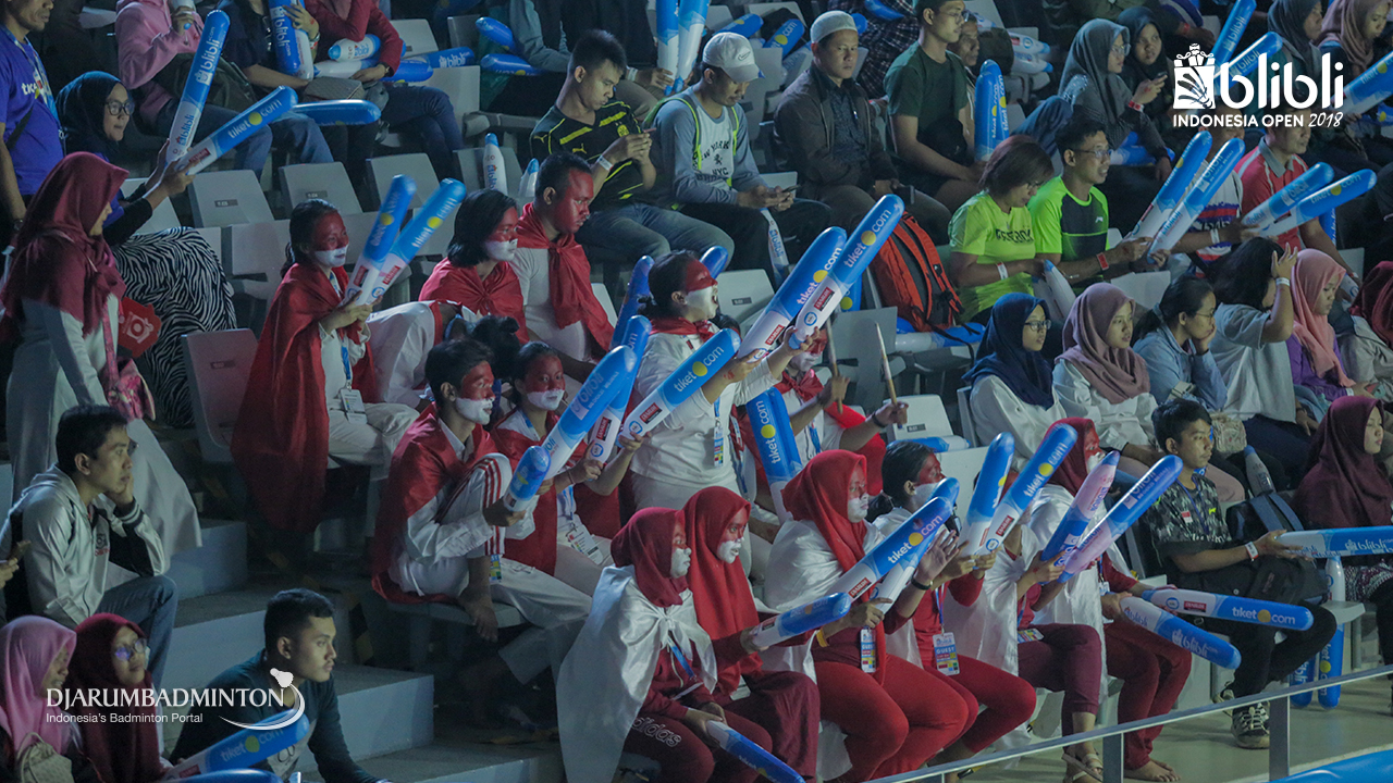 Keseruan pendukung Indonesia pada BLIBLI Indonesia Open 2018