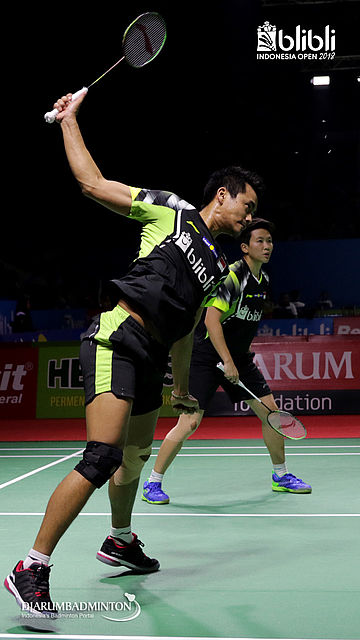 R16 - Tontowi Ahmad/Liliyana Natsir (INA) mengembalikan shuttlecock