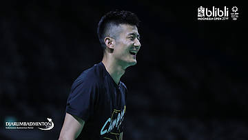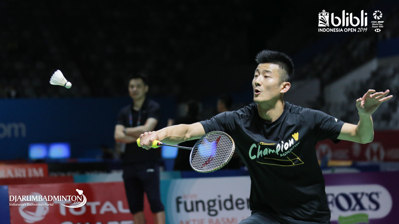 CHEN Long (China) saat melakukan sesi latihan di Istora senayan