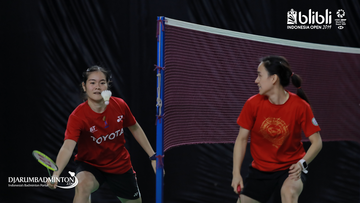 Nitchaon JINDAPOL (Thailand) sedang melakukan latihan di Istora
