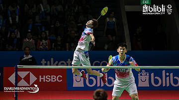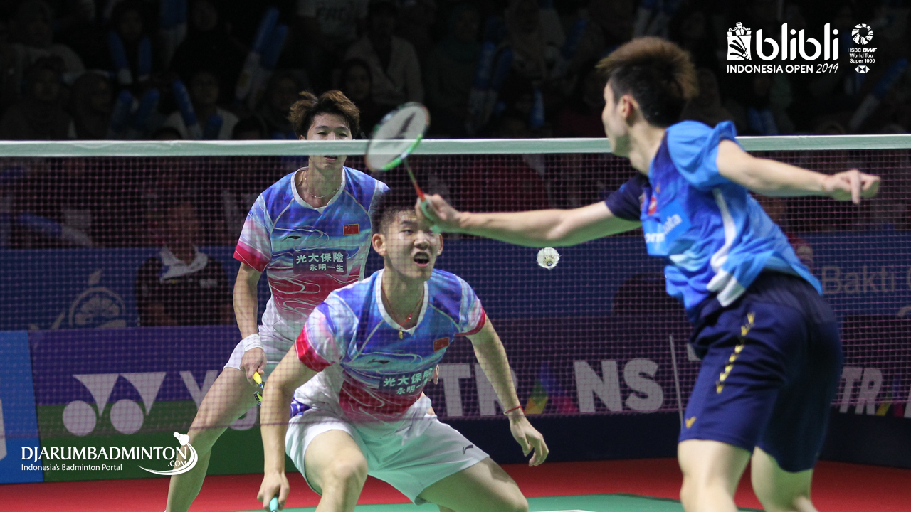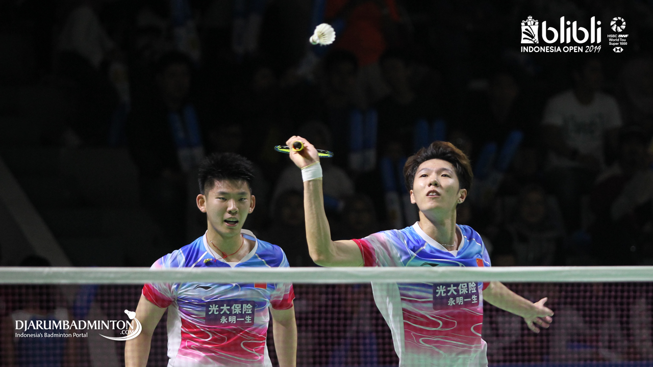LI Jun Hui, LIU Yu Chen (China) menyambut shuttlecock